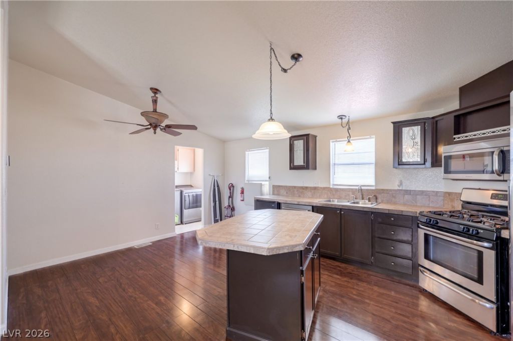 Great open floor plan with NO HOA! This home sits on a large lot with potential RV or boat parking. The spacious layout features a separate primary bedroom for added privacy and a large kitchen with island, stainless steel appliances, and abundant cabinetry with convenient pull-outs. Ceiling fans are located throughout the home for added comfort. Outside, you'll find two full-size storage sheds, a large backyard deck, and a carport providing covered parking. Conveniently located near walking and biking trails, offering great outdoor recreation just minutes away.