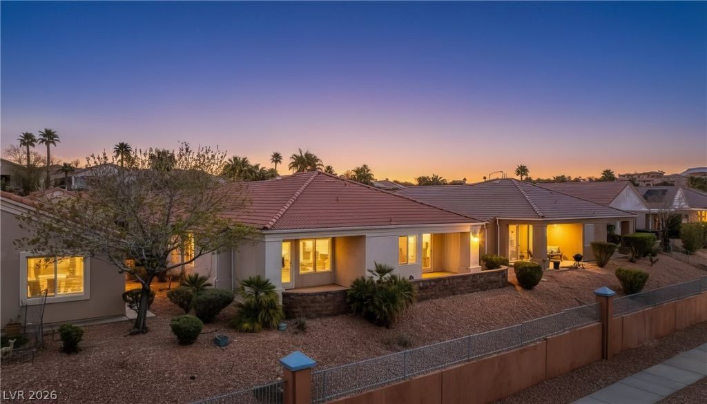 This inviting home features an open, airy layout with vaulted ceilings and a neutral color palette that creates a bright and comfortable atmosphere throughout. Durable tile and vinyl flooring provide both style and easy maintenance.The spacious great room flows seamlessly through the main living areas, offering an open feel that's perfect for relaxing or entertaining. A versatile den provides the ideal space for a home office, hobby room, or additional sitting area. Step outside and enjoy the peaceful surroundings with two covered patios-one just off the great room and another private patio outside the primary bedroom, perfect for morning coffee or unwinding in the evening. Located in a well-maintained gated HOA community, residents enjoy access to fantastic amenities including a clubhouse, pool, spa/hot tub, and tennis courts, making it easy to enjoy the Mesquite lifestyle year-round.