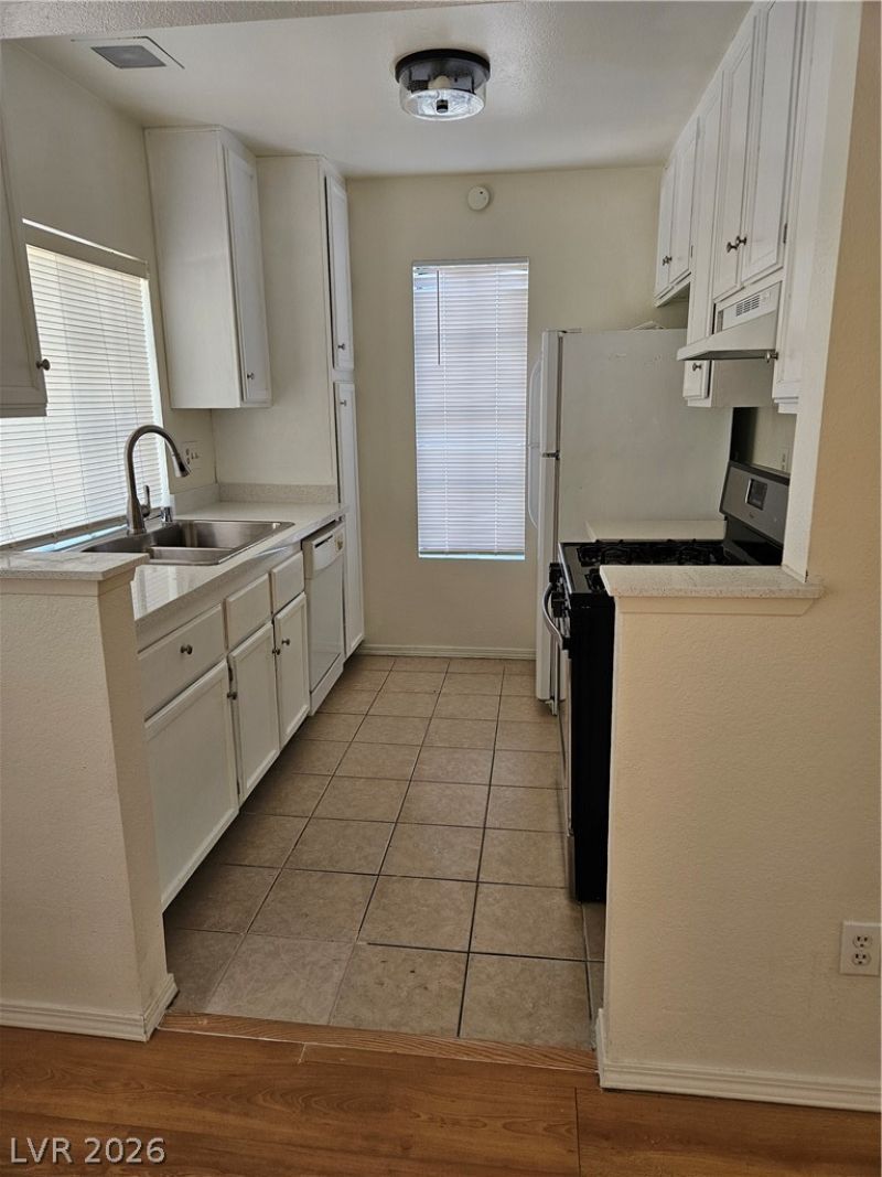 Beautifully upgraded dual primary, 2-bedroom condo located in the Southwest Valley of Las Vegas in the Las Casitas condo development. Large living room with open plan concept, that flows into the kitchen with new quartz counter-top, stainless-steel sink - chef's delight and perfect for entertaining. Newly painted white concept color scheme with laminate flooring throughout for easy maintenance. Both spacious primary bedrooms has attached bathrooms, and vanity area and closet, offers privacy and convenience. Enjoy the large balcony outside, perfect for outdoor dining and relaxation. Well-maintained gated community with swimming pools, spas, and this condo is centrally located with easy access to restaurants, close vicinity to the world-famous Las Vegas Strip, Airport, UNLV, and the Allegiant Stadium, home of the Las Vegas Raiders. LOCATION! LOCATION! make this condo your home. Schedule an appointment.