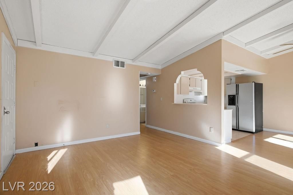 Spacious 2nd floor condo with a community pool view! This condo has an open floor plan, spacious bedrooms, enormous bath tub located in the primary bathroom, a walk-in shower located in the hallway bathroom, is located on the 2nd story of the building, has a spacious covered patio in addition to a balcony, is located in close proximity to the Las Vegas Strip, and directly off of Decatur Blvd, a main vein of the city:) The water and trash are included in the monthly HOA dues. Sewer bill is paid separately. Annual property taxes are less than $700 per year!!!