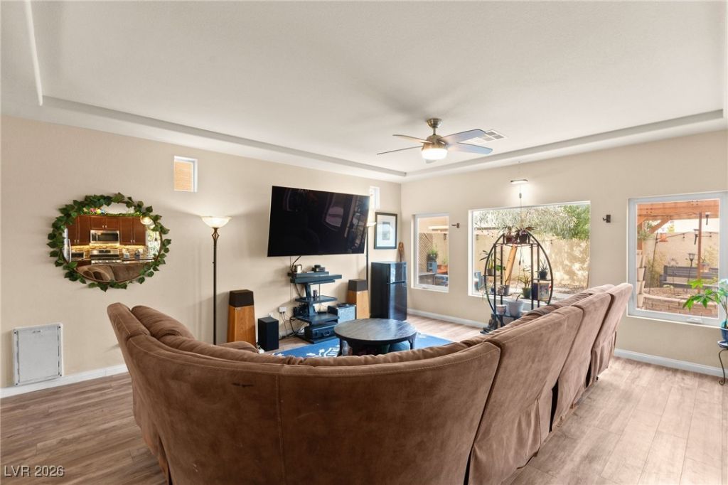 Welcome to 6518 Averill Creek Ave, a beautifully appointed solar-powered home in a highly desirable Las Vegas neighborhood. This spacious residence offers 3 bedrooms, 3 bathrooms, and 2,643 square feet of thoughtfully designed living space. The open-concept kitchen features granite countertops, ample cabinetry, and a walk-in pantry?ideal for everyday living and entertaining. All bedrooms are located upstairs for added privacy, while the third floor offers an expansive loft perfect for a game room, media space, or home office, complete with a pool table and built-in surround sound. The home is fully wired with ethernet for modern connectivity. Enjoy the relaxing backyard with a jacuzzi, plus upgrades including a whole-home water filtration system, tankless water heater, garage mini-split A/C, and a 240V 50-amp outlet for EVs or workshop needs. This home seamlessly blends comfort, technology, and location.