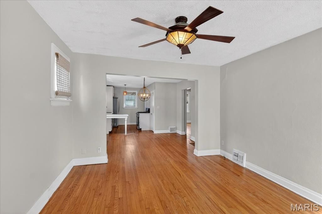 Welcome Home to your Super cute Brick Bungalow in a wonderful walkable Richmond Heights neighbourhood! So close to everything. Lovely Hardwood floors throughout. Sweet front porch and entry foyer. Vinyl Windows, plantation shutters (available) , and ceiling fans. Designer lighting. Kitchen is fun and opens to the dining area. Refrigerator stays! You will also access a newer deck in the rear of the home and also the so much potential in the Full unfinished basement. Washer and Dryer stay! This is a storybook home that has so much to offer. You will fall in love with the charm inside and out.
